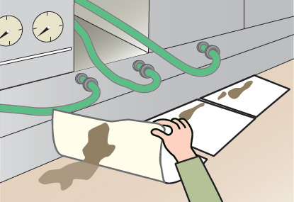 破れたオイルマットは二次汚染のもとになります。
