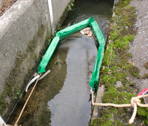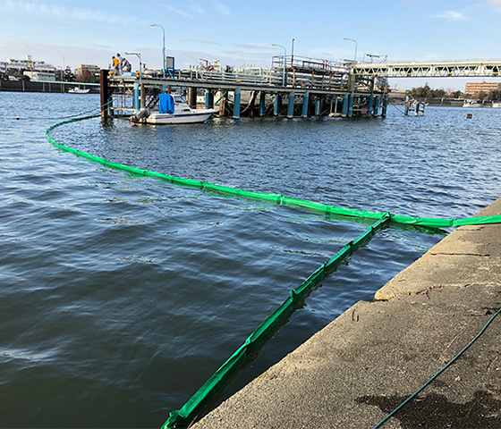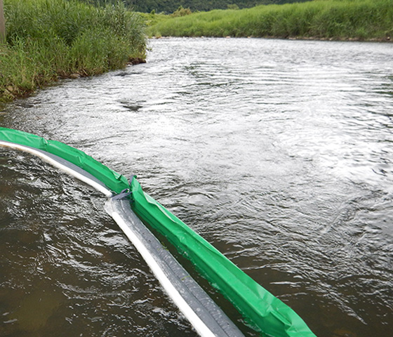 従来の大型フェンスが苦手とする急流、浅流、護岸などで、油の流下をしっかり防除