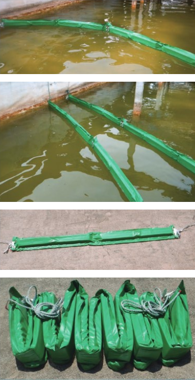 従って流出事故時などには、ラフトフェンスの上流側に浮力の強いオイルマット8活性炭系、微細繊維系など)を浮かべ続けておくことをお勧めいたします。