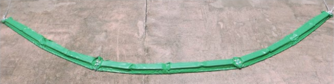 - パラペットフェンスは0.75Kg/mと軽量なので、少人数でも迅速に防除力の高い「斜め」「二列平行」展張が可能。 実際に0.4m/秒の河川でも油を止めることが出来ます。(30°の鋭角展張の場合)
