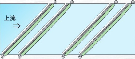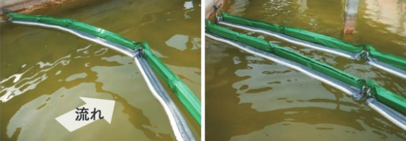 - 川幅の広い場所では数本を連結し、現場にあわせて長さを調節が可能です。